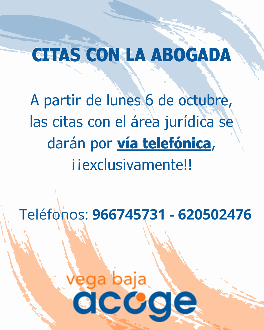 Las citas con el área jurídica se darán exclusivamente por teléfono los lunes a las 8:00.